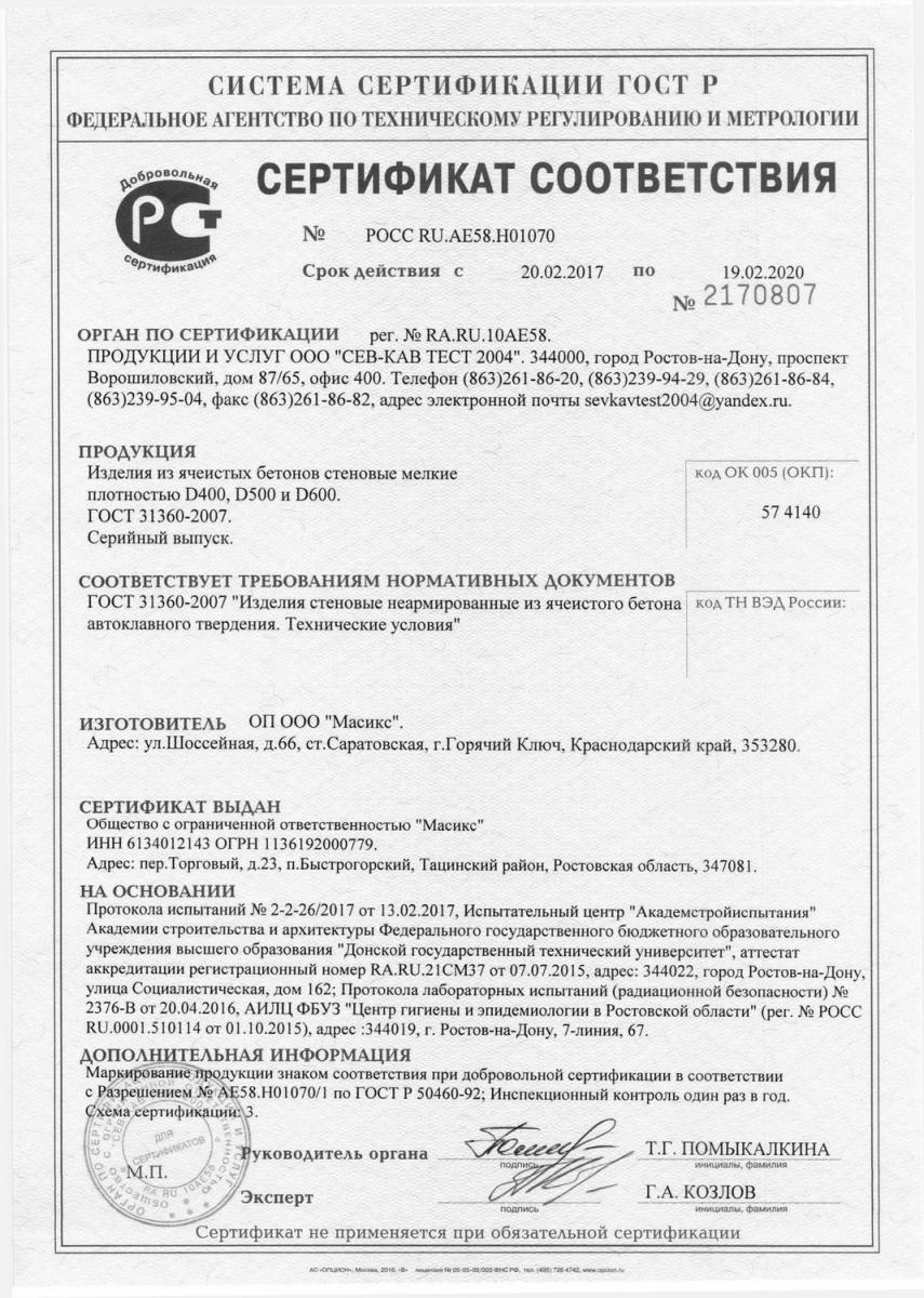 Плотность газобетона Masix D500 составляет 500 кг/м³. Это означает, что материал обладает оптимальным соотношением прочности и теплоизоляционных свойств, что делает его идеальным для строительства стен.